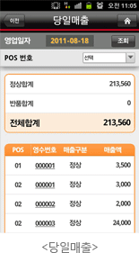 언제어디서든 내손안에 있는 스마트 폰에서 매장의 매출내역 조회가 가능 합니다.